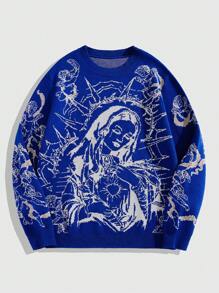 Street Life Men's Vintage Casual Round Neck Graphic Pullover Knit Sweater, Autumn/Winter