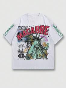 Street Life Men's Vintage Graphic Print Short Sleeve Crew Neck T-Shirt, Suitable For Casual Daily Wear, Spring & Summer