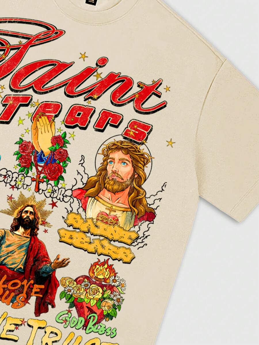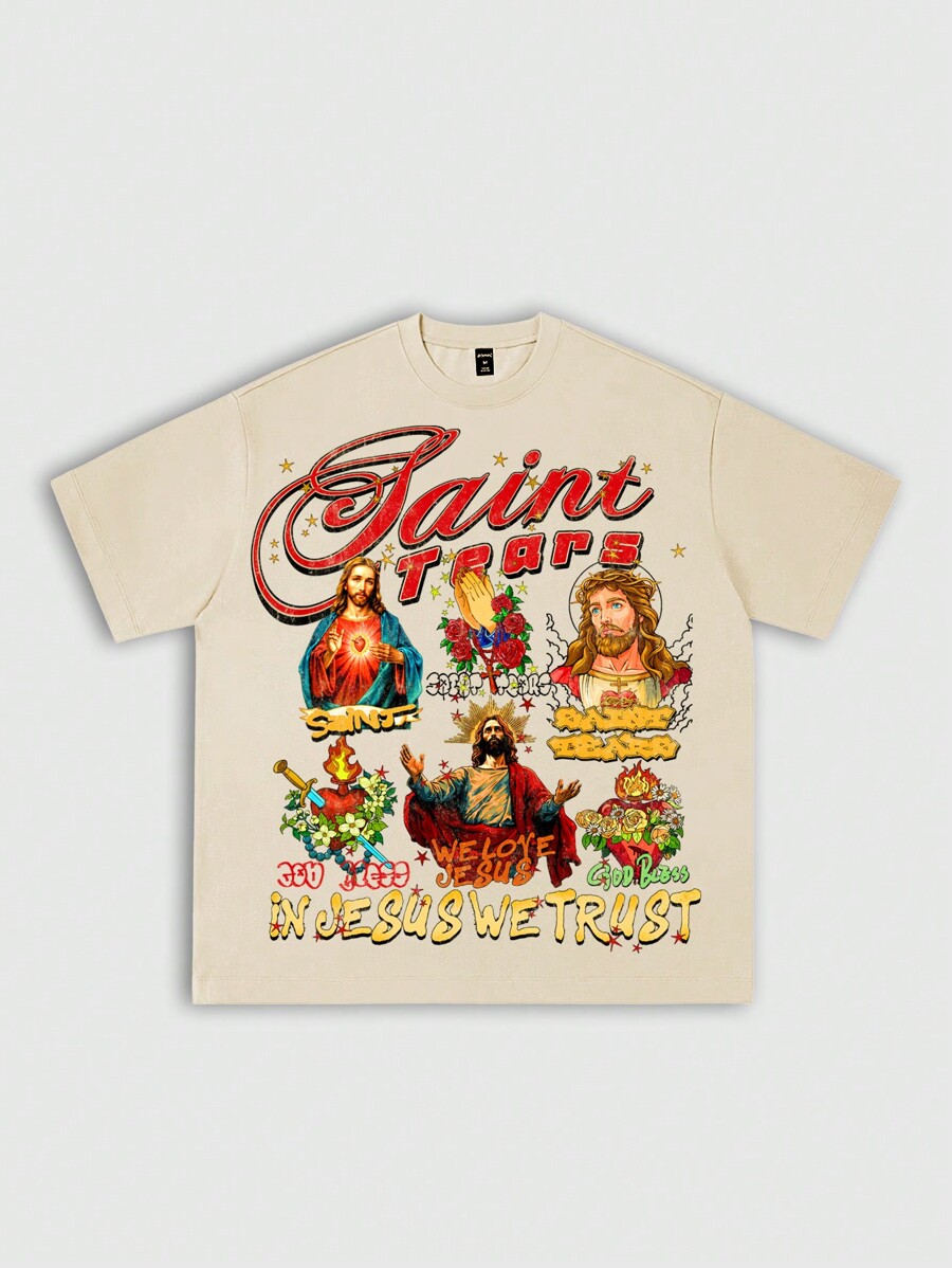 Street Life Men's Vintage Letter & Character Print Casual Short Sleeve Round Neck T-Shirt