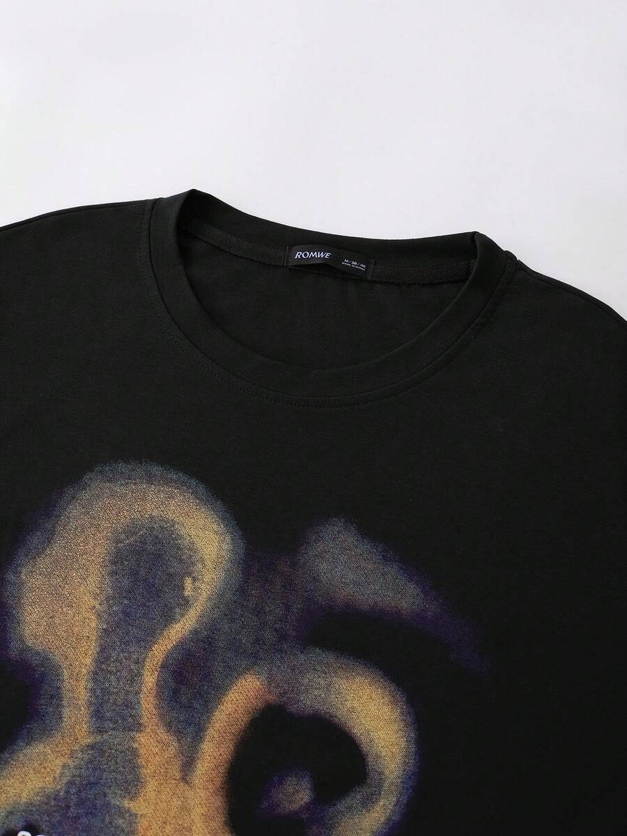 Street Life Men's Vintage Street Silhouette Thermal Imaging Figure Print Short Sleeve T-Shirt, Summer, 2000s Style