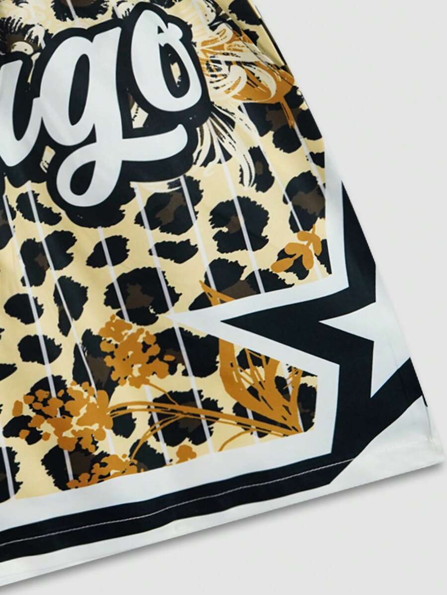 Street Life Men's Woven College Leopard Print Shorts, Suitable For Spring & Summer