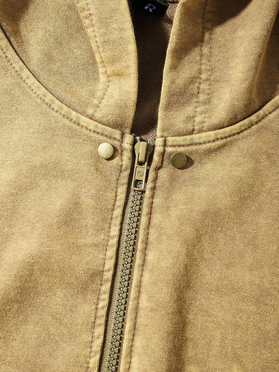 Grunge Punk Men's Zip Up Casual Washed Vintage Style Hooded Top