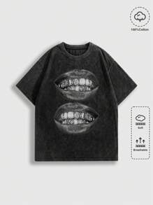 Street Life Punk Street Style Random Snowflake Lip Print Graphic T-Shirt