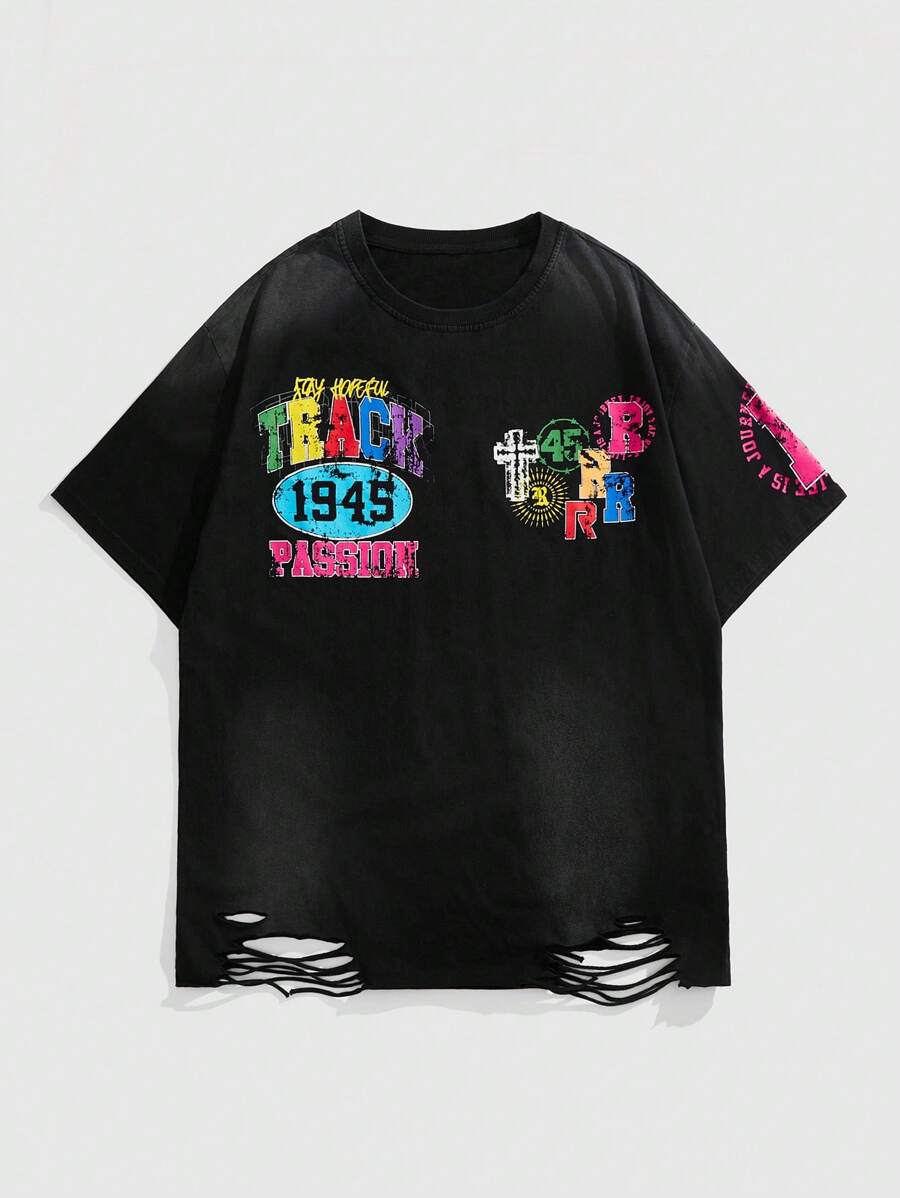 Prep Racing Vintage Streetwear Men's Short Sleeve Letter Print Casual T-Shirt