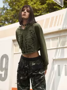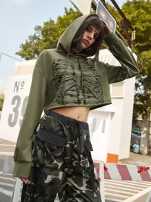Street Life Skeleton Graphic Crop Hoodie