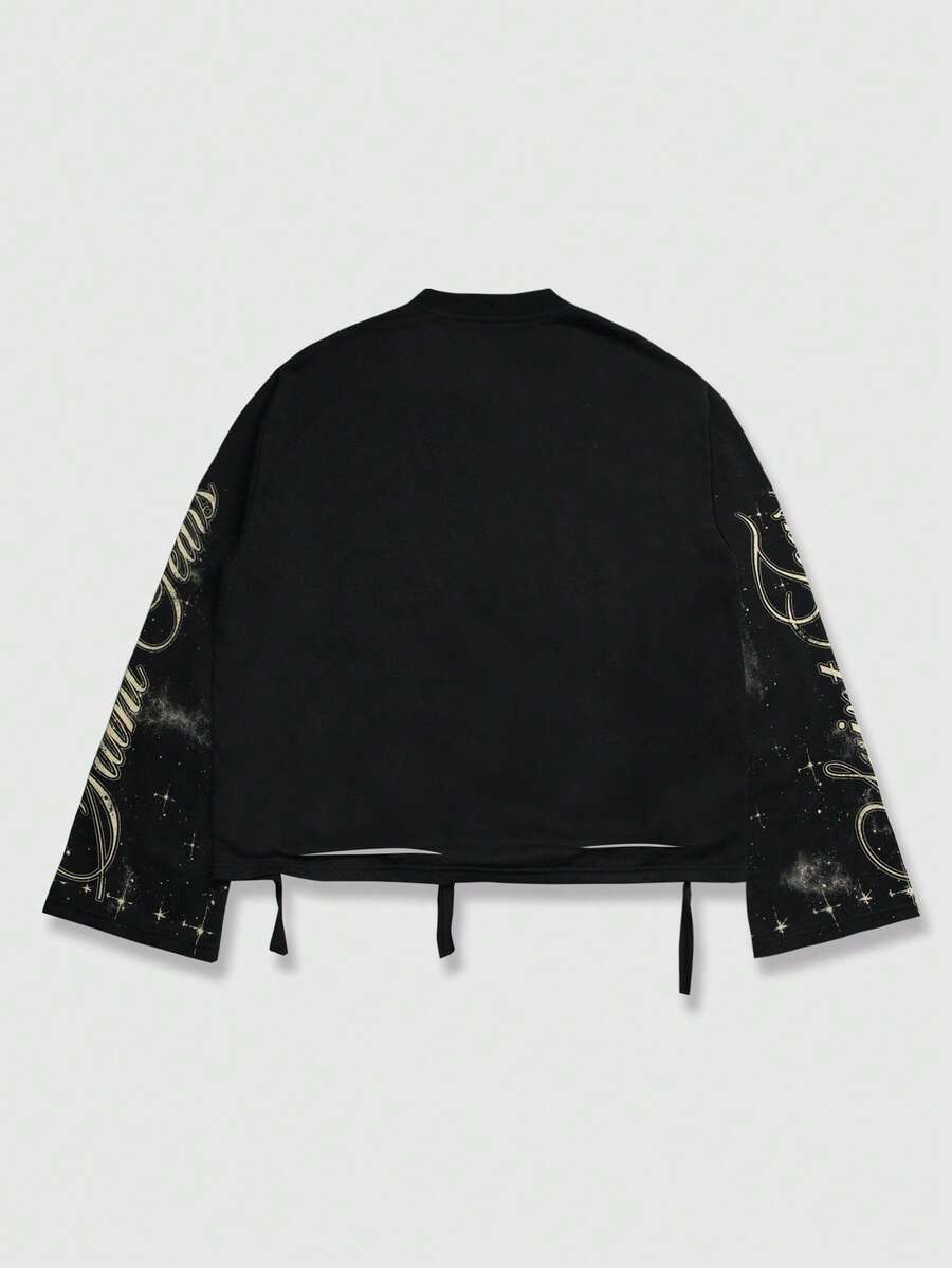Street Life Spring Casual Graphic Vintage Street Style Distressed Saint Graphic Long Sleeve Crew Neck Men'S T-Shirt