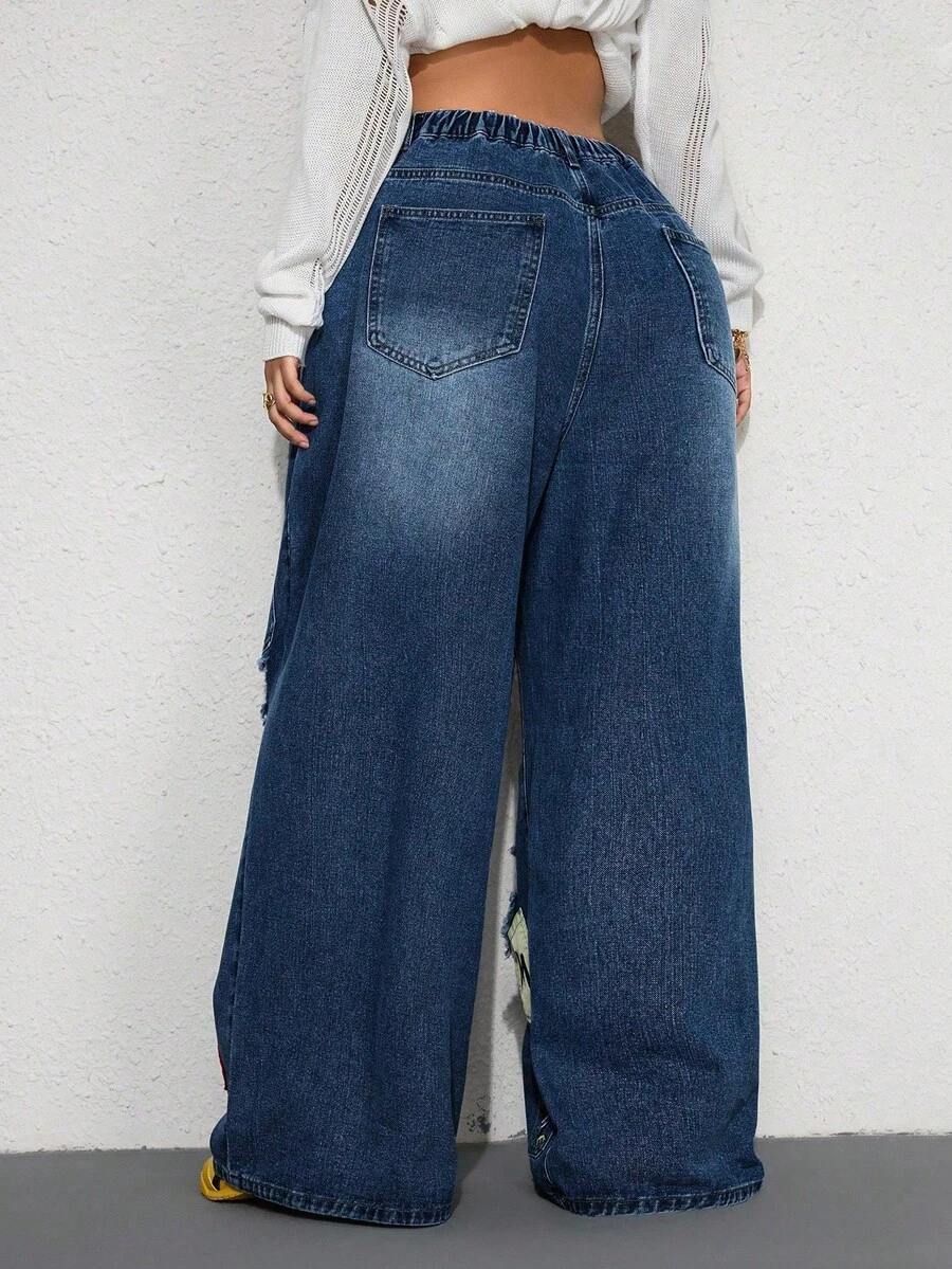 Street Life Spring/Summer Y2K Casual Street Style Pocket Embroidery Design Dual Waistband Plus Size Loose Fit Denim Jeans