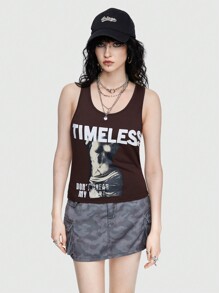 Street Life Street Art Letter And Figure Print Muscle Tank Top