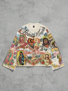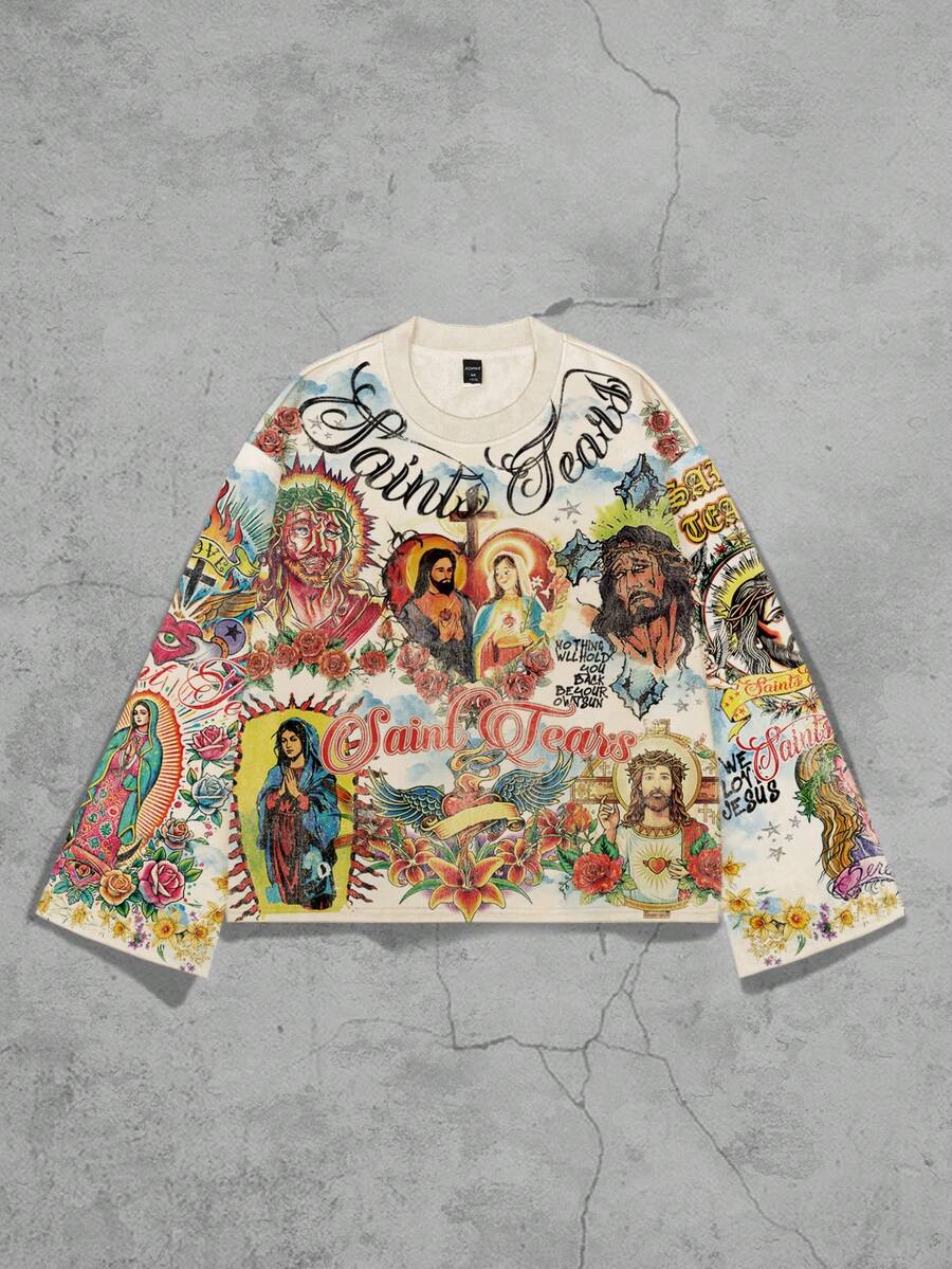 Street Life Street Fashion Religious Character Long Sleeve T-Shirt, Couple Matching Tops