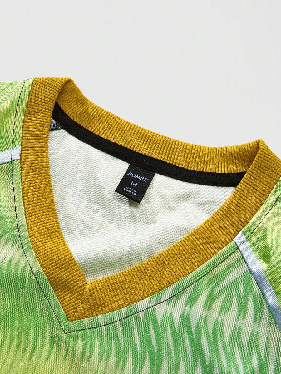 Anime Summer Men's American Streetwear V-Neck Patchwork Mesh Loose Casual Sports Jersey