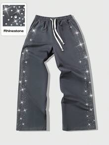 Street Life Unisex Straight Leg Sweatpants With Rhinestone American Street Style Design