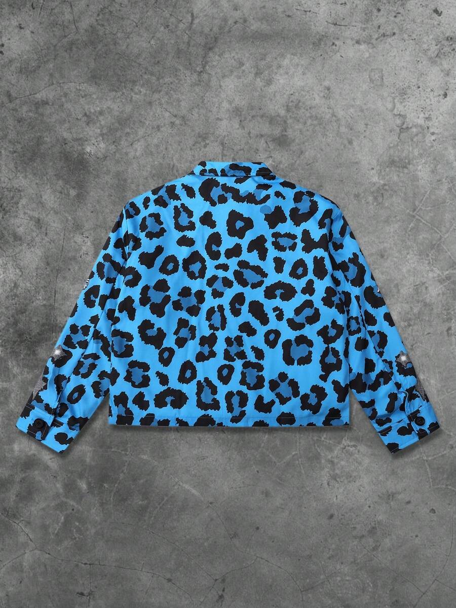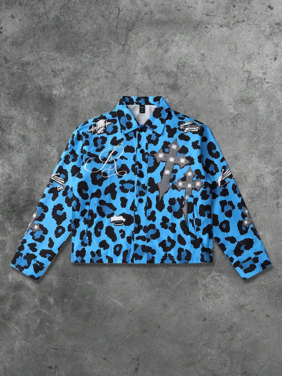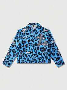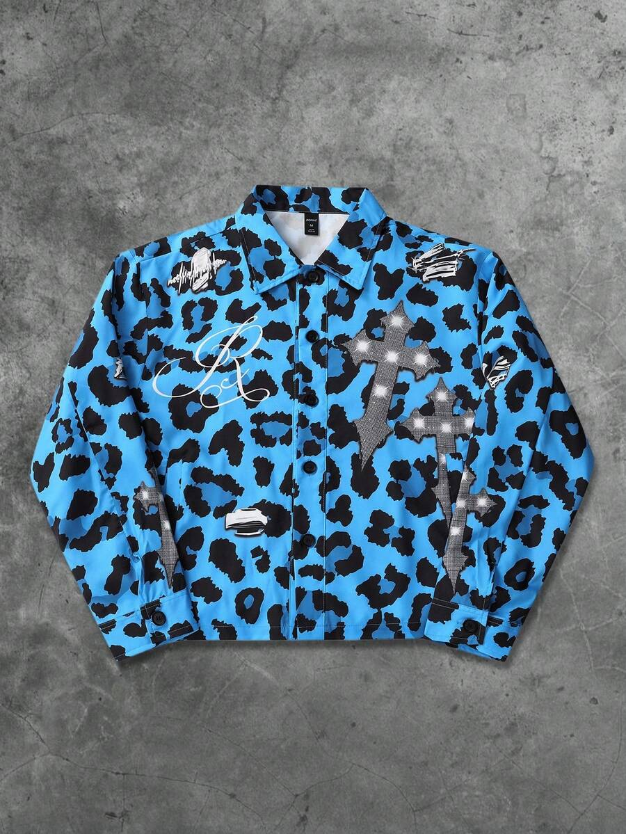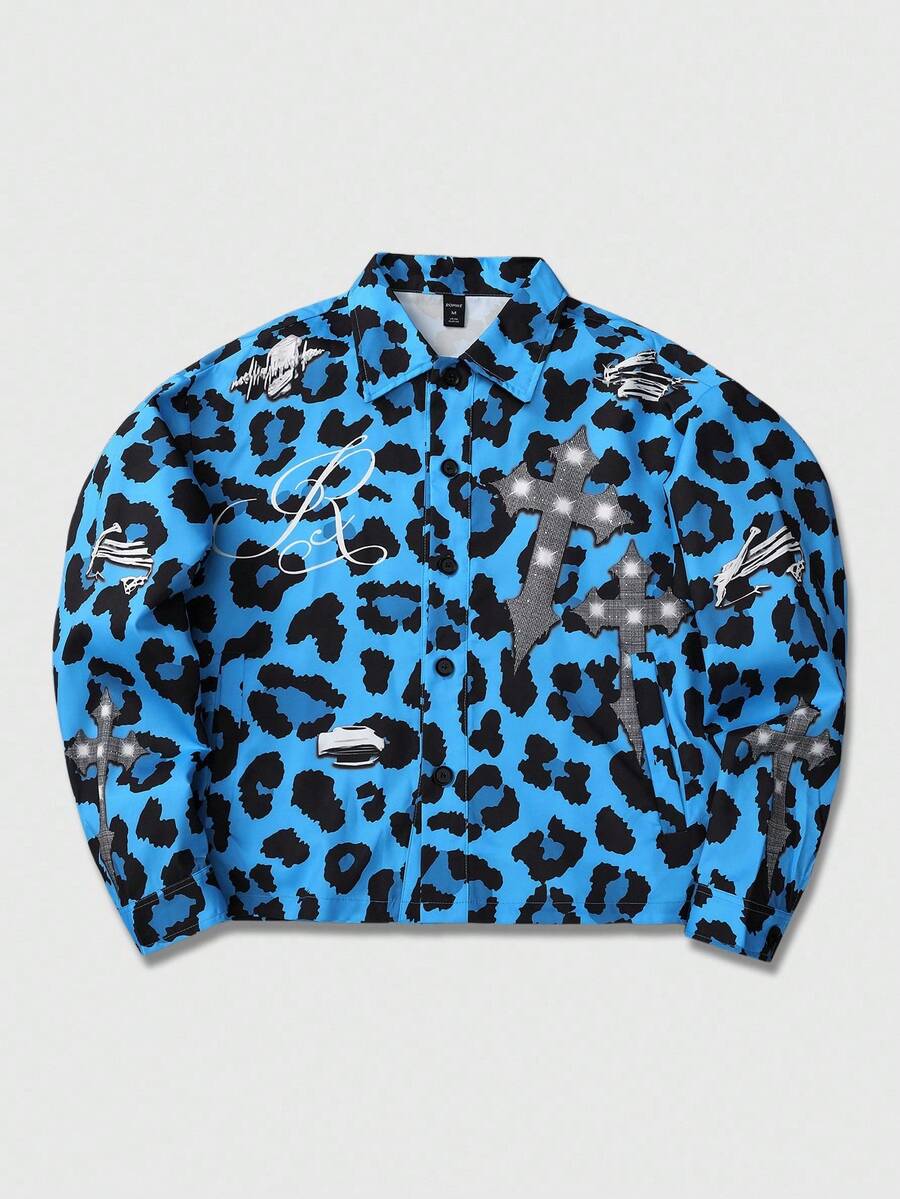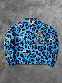 Street Life Unisex Street American Cross & Text Leopard Print Jacket, Fall