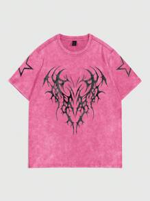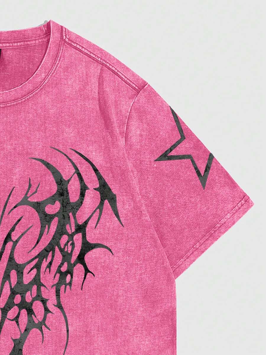 Street Life Vintage Washed Corpse Bride Print Short Sleeve T-Shirt For Men