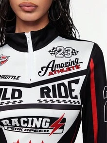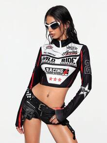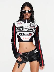 Street Life Women's Long Sleeve Racer Graphic Print Top, Streetwear Style