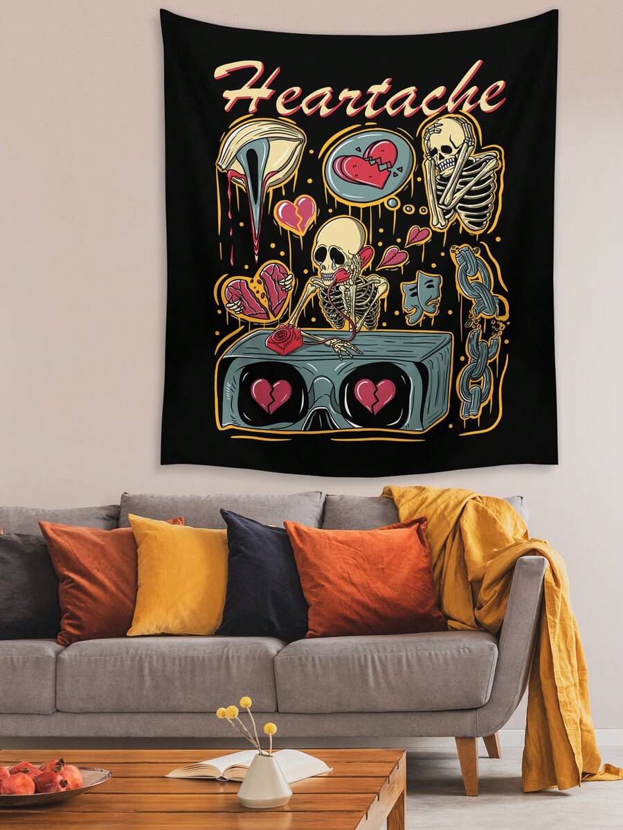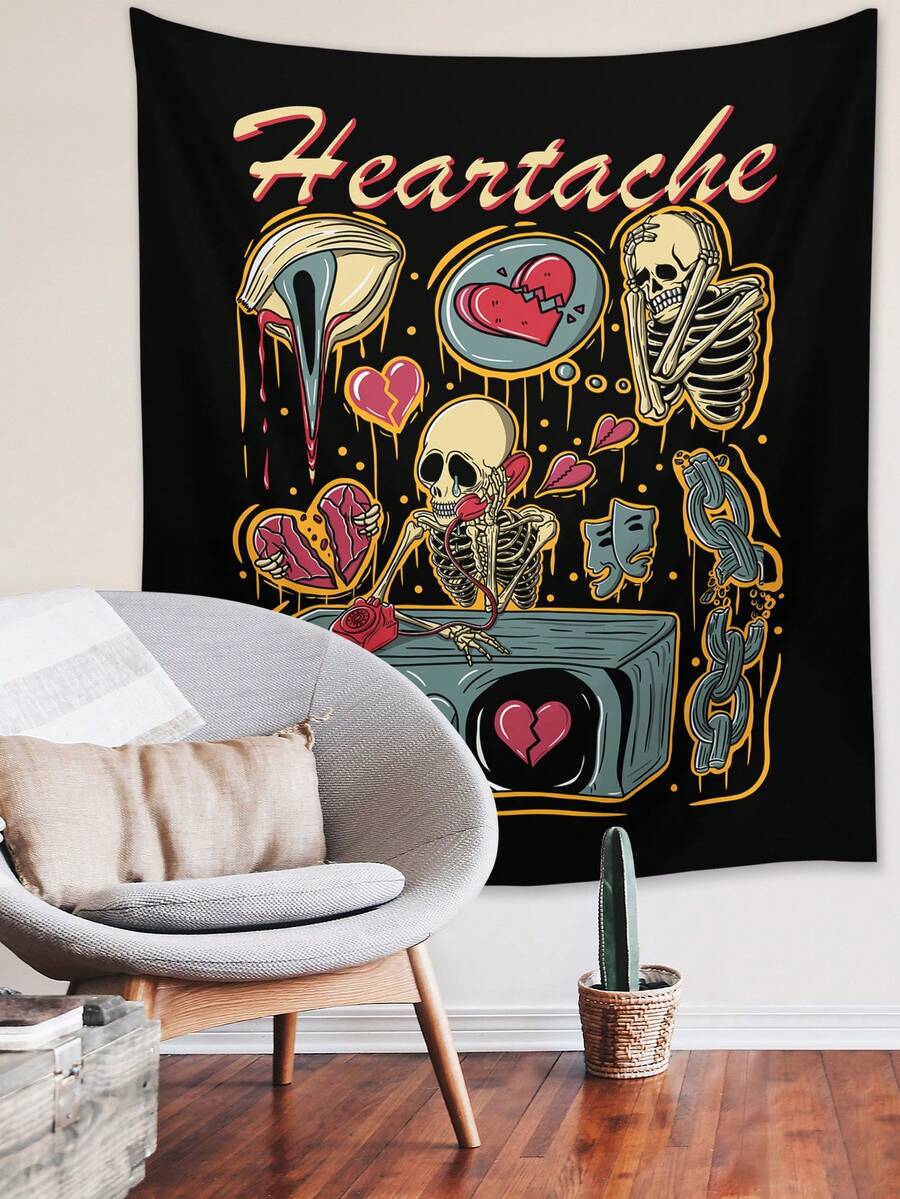 Studio Chunk 1pc Skull & Letter Graphic Tapestry,Dark Washable Tapestry Poster Wall Hanging For Bedroom Aesthetic