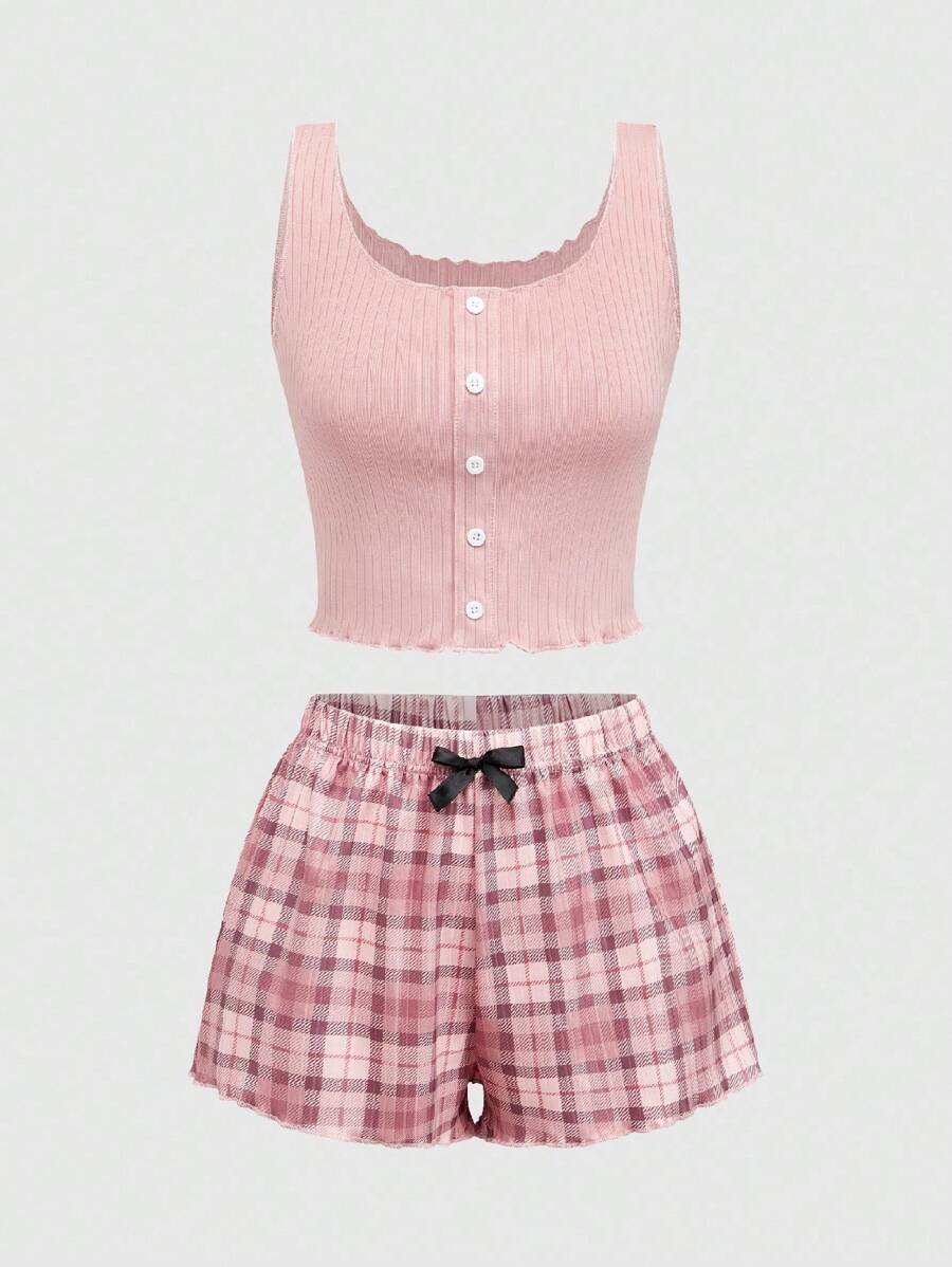 Summer Casual All-Match Comfortable Ribbed Stripe Sleeveless Top And Shorts Women Pajama Set