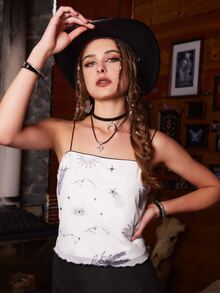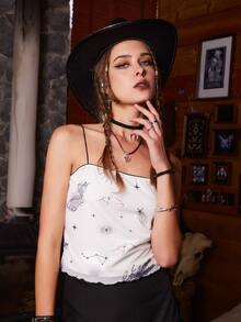 Goth Sun & Moon Graphic Lettuce Trim Crop Cami