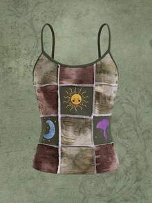 Hippie Sun & Moon Graphic Tie Dye Cami Top
