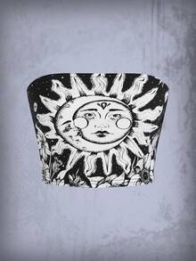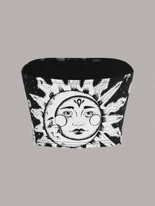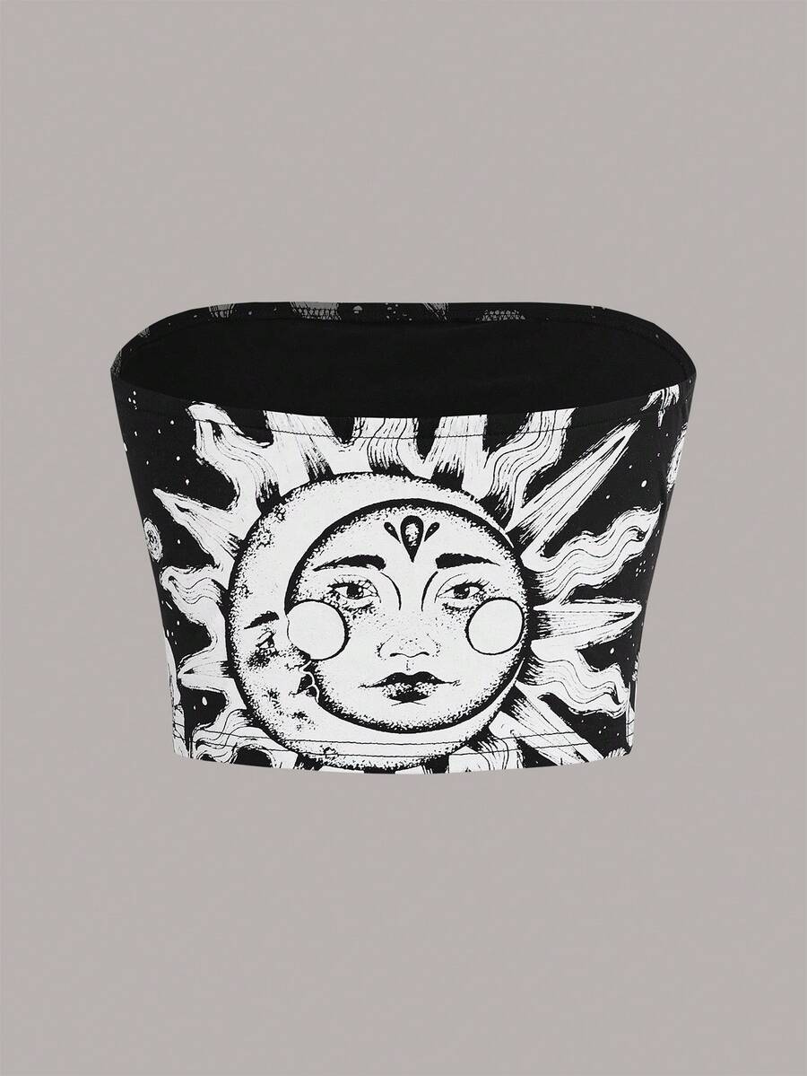 Herminedecrayon Goth Sun & Moon Graphic Tube Top