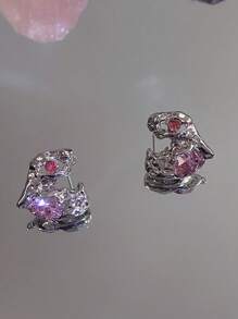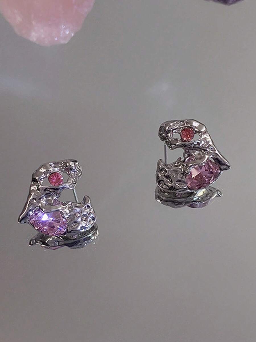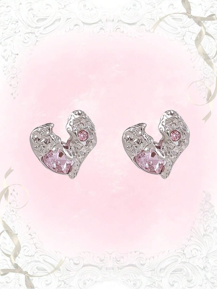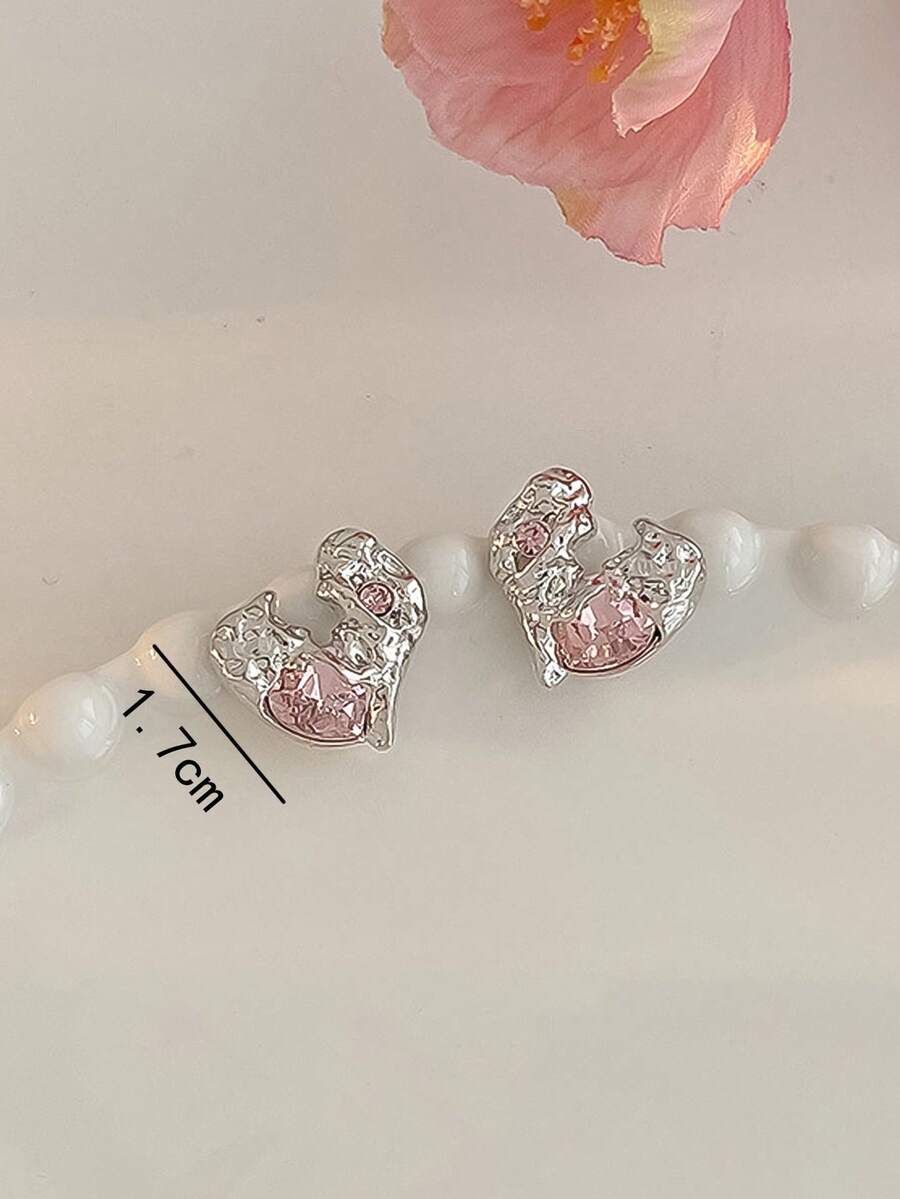 Sweetness 1pair Fashion Zinc Alloy Rhinestone Decor Heart Stud Earrings For Women For Daily Decoration