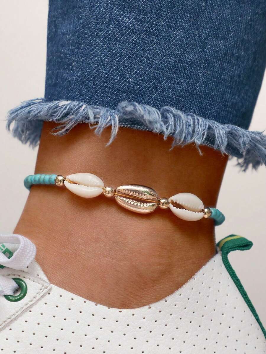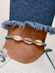 Sweetness 1pc Fashion Zinc Alloy Shell Decor Beaded Anklet For Women For Daily Decoration