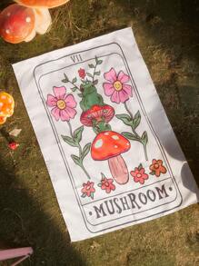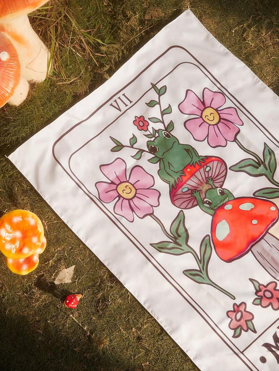 Sweetness 1pc Frog & Mushroom Graphic Tapestry,Cute Washable Tapestry Poster Wall Hanging For Bedroom Aesthetic