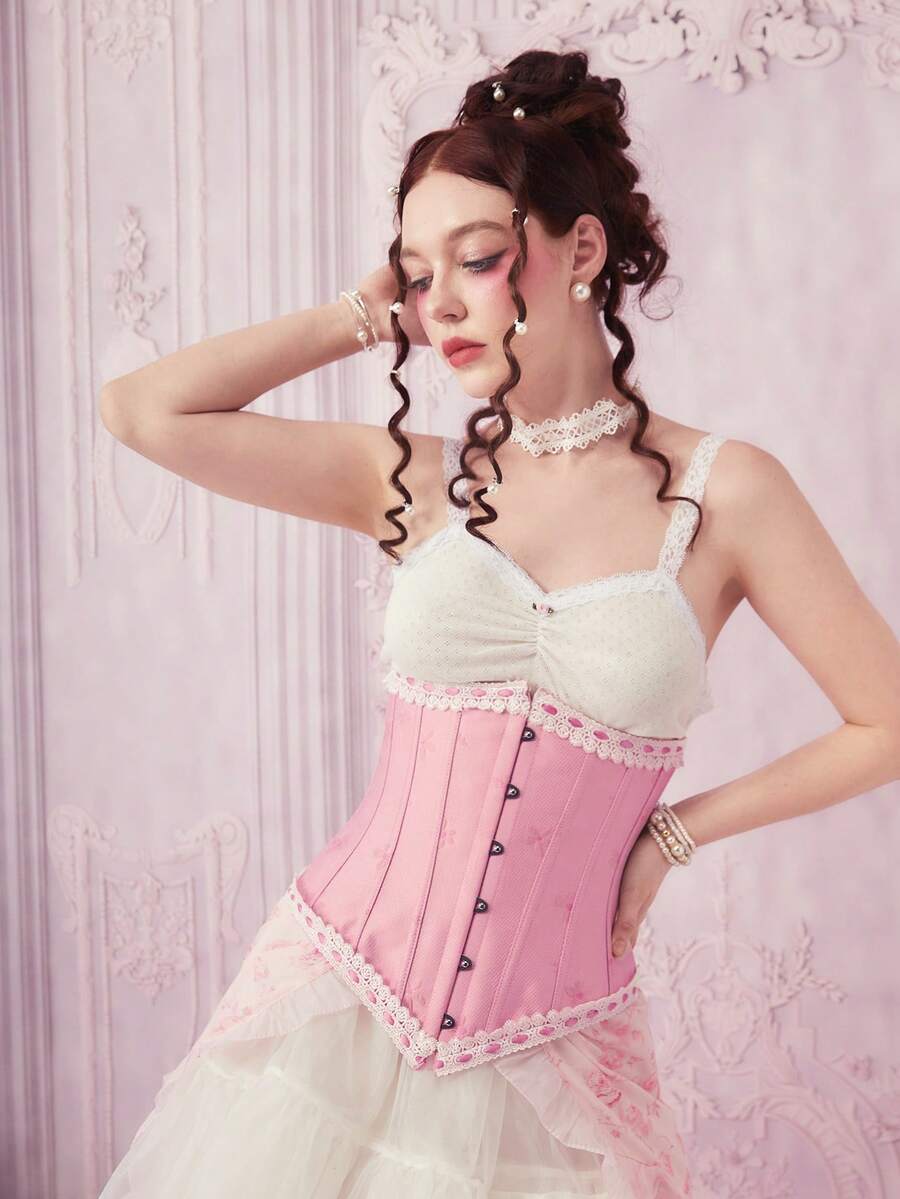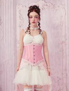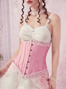 Sweetness 1pc Women Floral Embroidery Contrast Lace Corset Belt