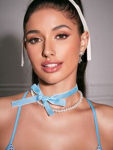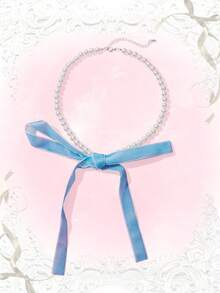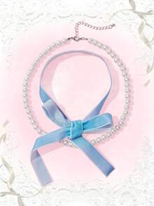 Sweetness 2pcs Bow Decor Faux Pearl Beaded Necklace