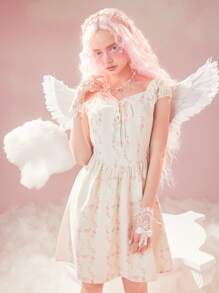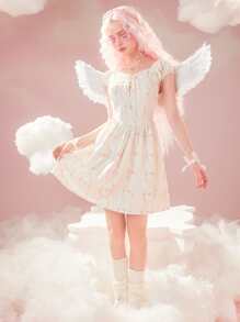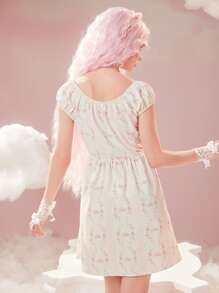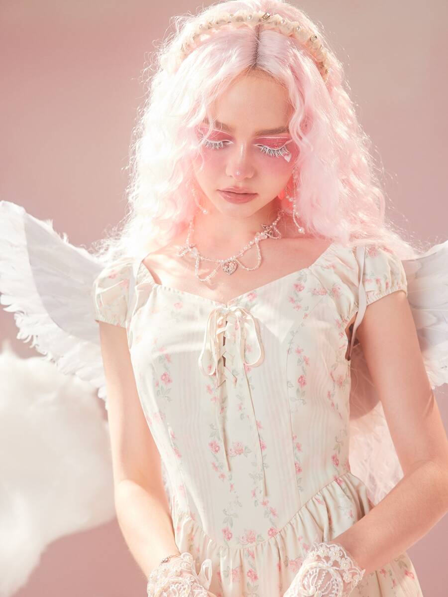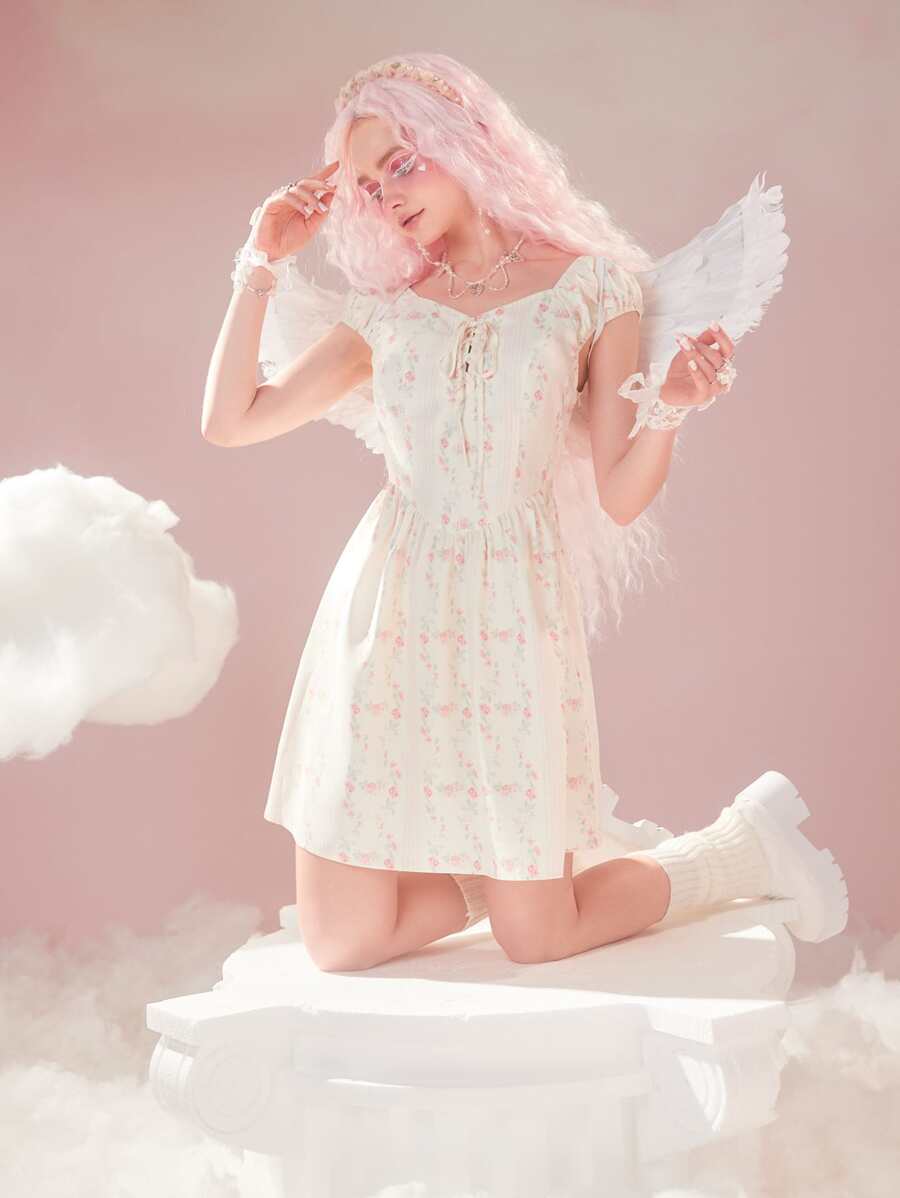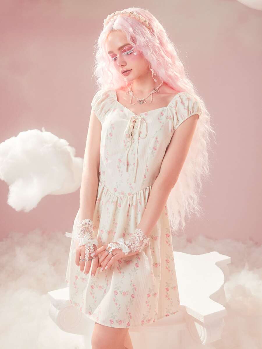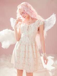 Ditsy Floral Print Lace Up Dress
