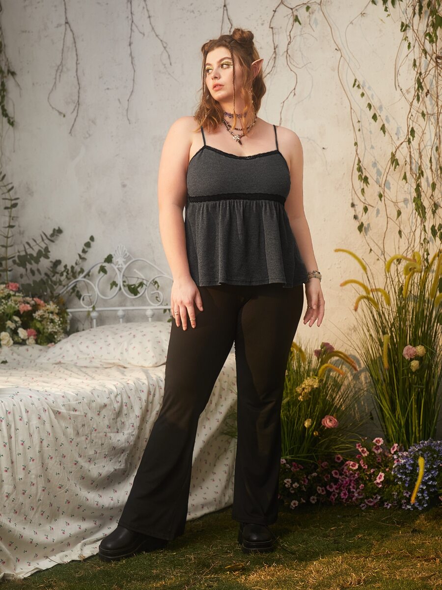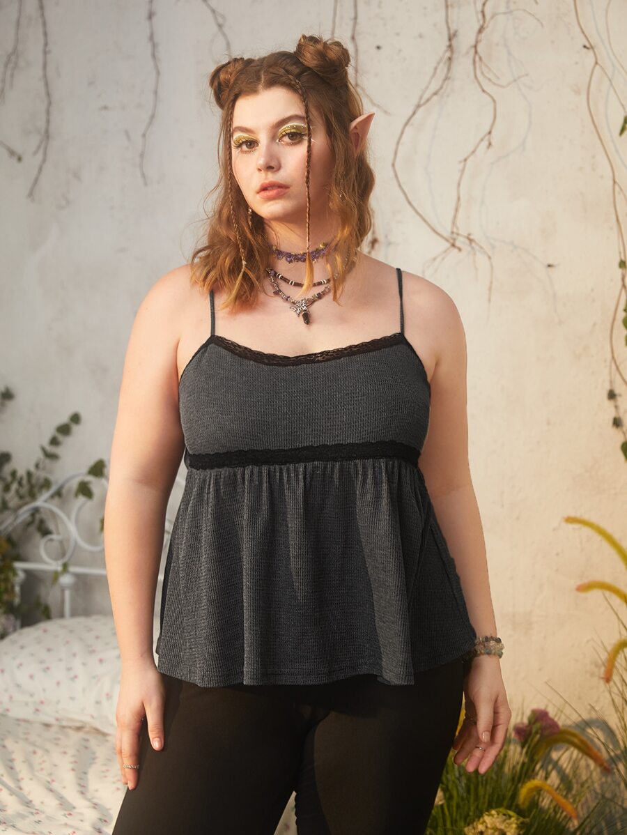 Kawaii Plus Lace Trim Peplum Cami Top
