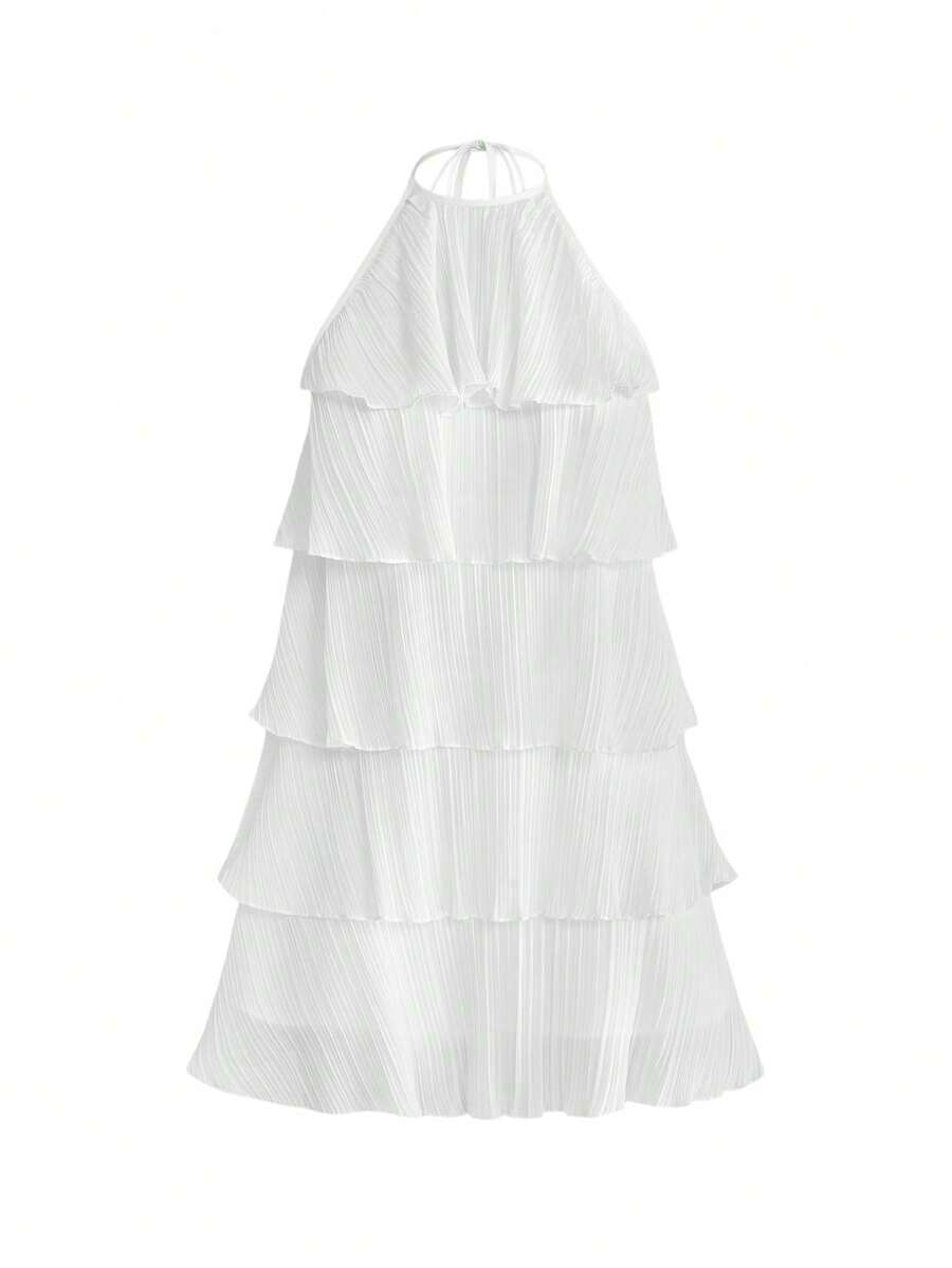 Sweetness Vacation Sweet Pleated Layered A-Line Halter Mini Dress For Women, Country