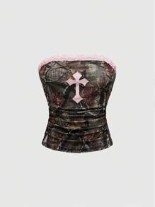Sweetness Women's Contrast Lace Embroidered Cross Sweet Tube Top