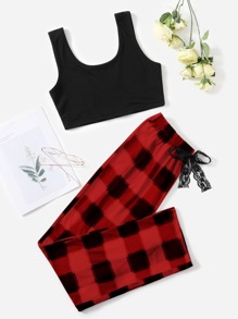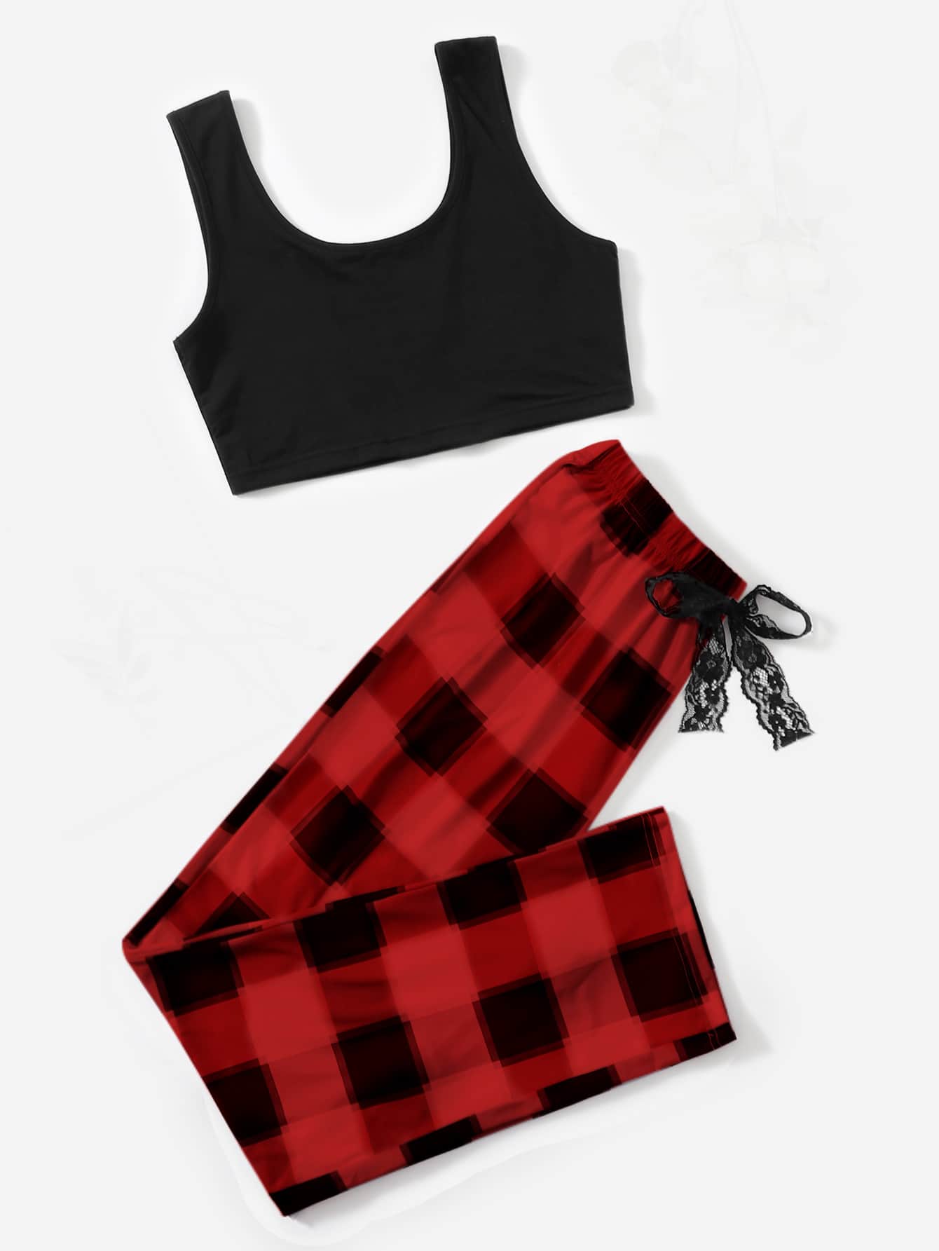 Tank Top & Buffalo Plaid Bow Detail Pants PJ Set