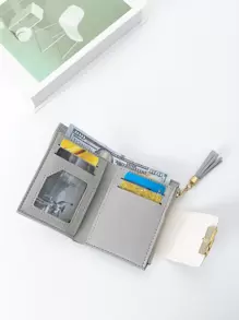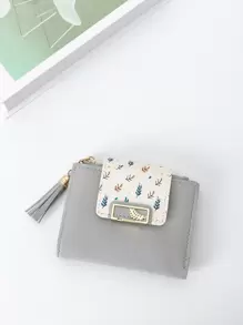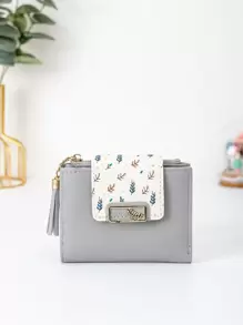 Tassel Decor Leaf Graphic Purse Credit Card Small Purse ID Window Bi-Fold Women Wallet Portable Money Cash White-Collar Workers For Male College Work Business Commute Office For Anniversary For Birthday Gift On Valentine Day Gift