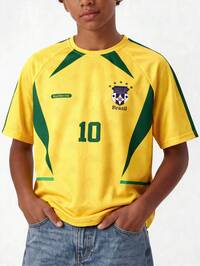 Street Life Teen Boy Summer Casual Sports College Style Colorblock Numeric & Letter Print Short Sleeve T-Shirt