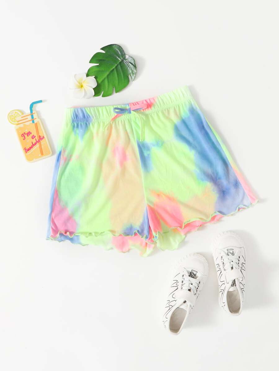 Teen Girls Lettuce Trim Tie Dye Track Shorts