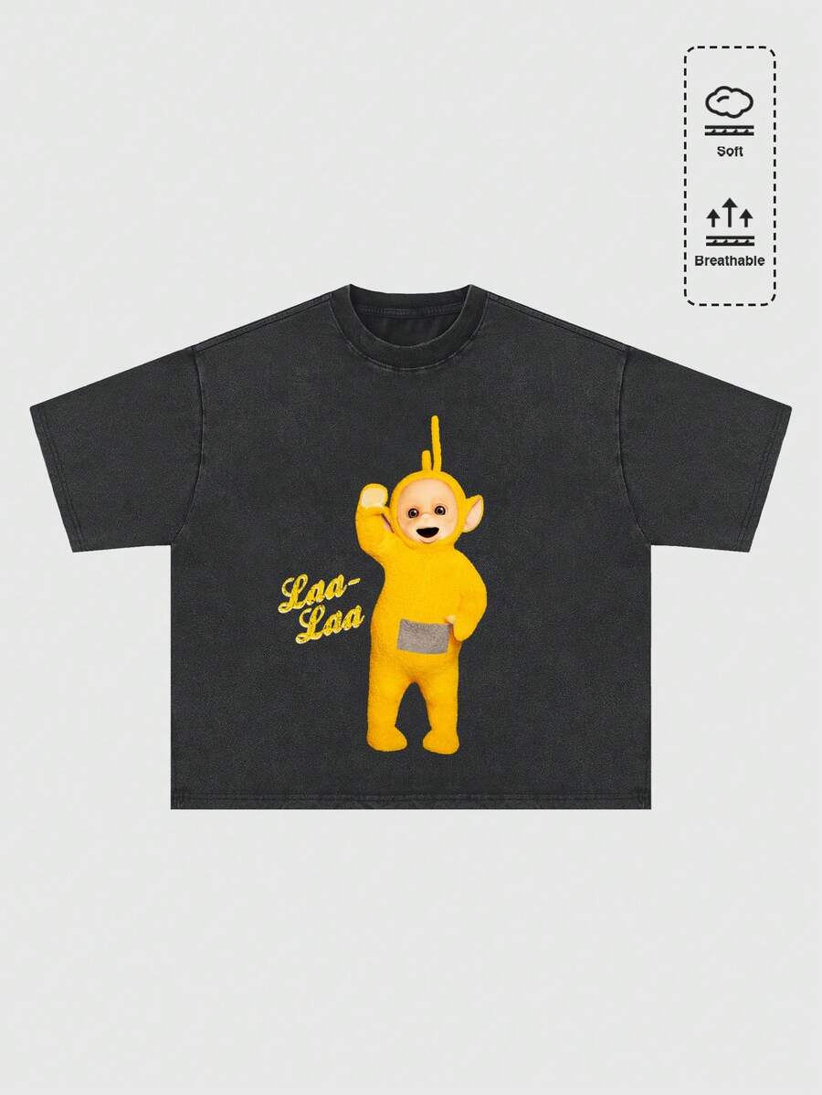 Teletubbies X ROMWE Men's Distressed Cartoon Graphic Loose T-Shirt