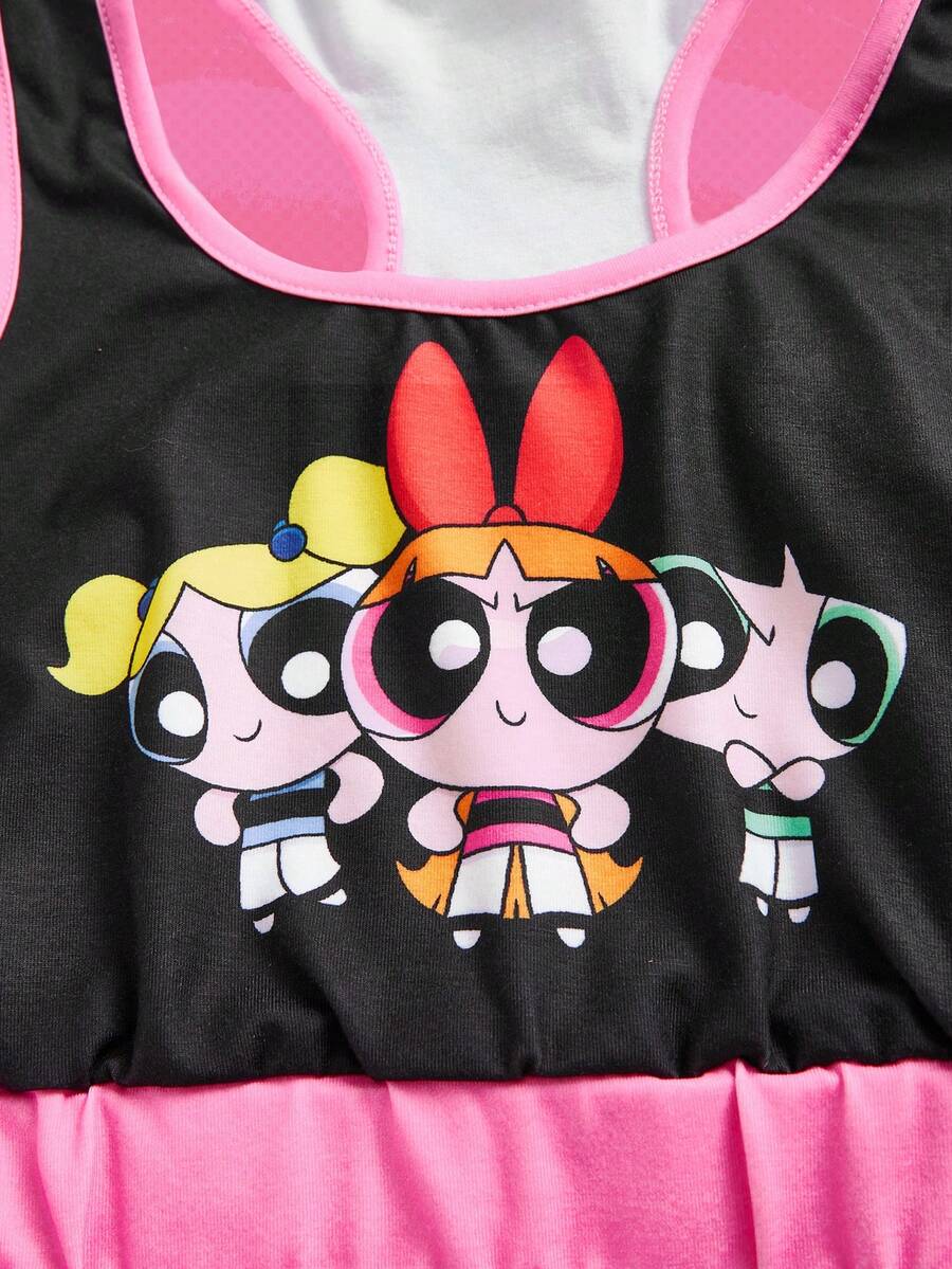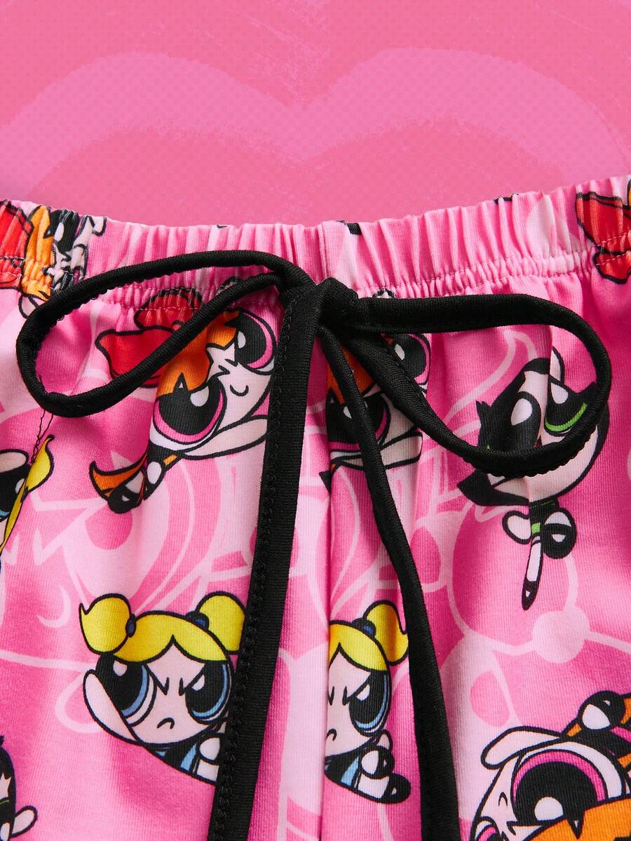 The Powerpuff Girls | ROMWE 3pcs Cartoon Graphic Contrast Binding PJ Set