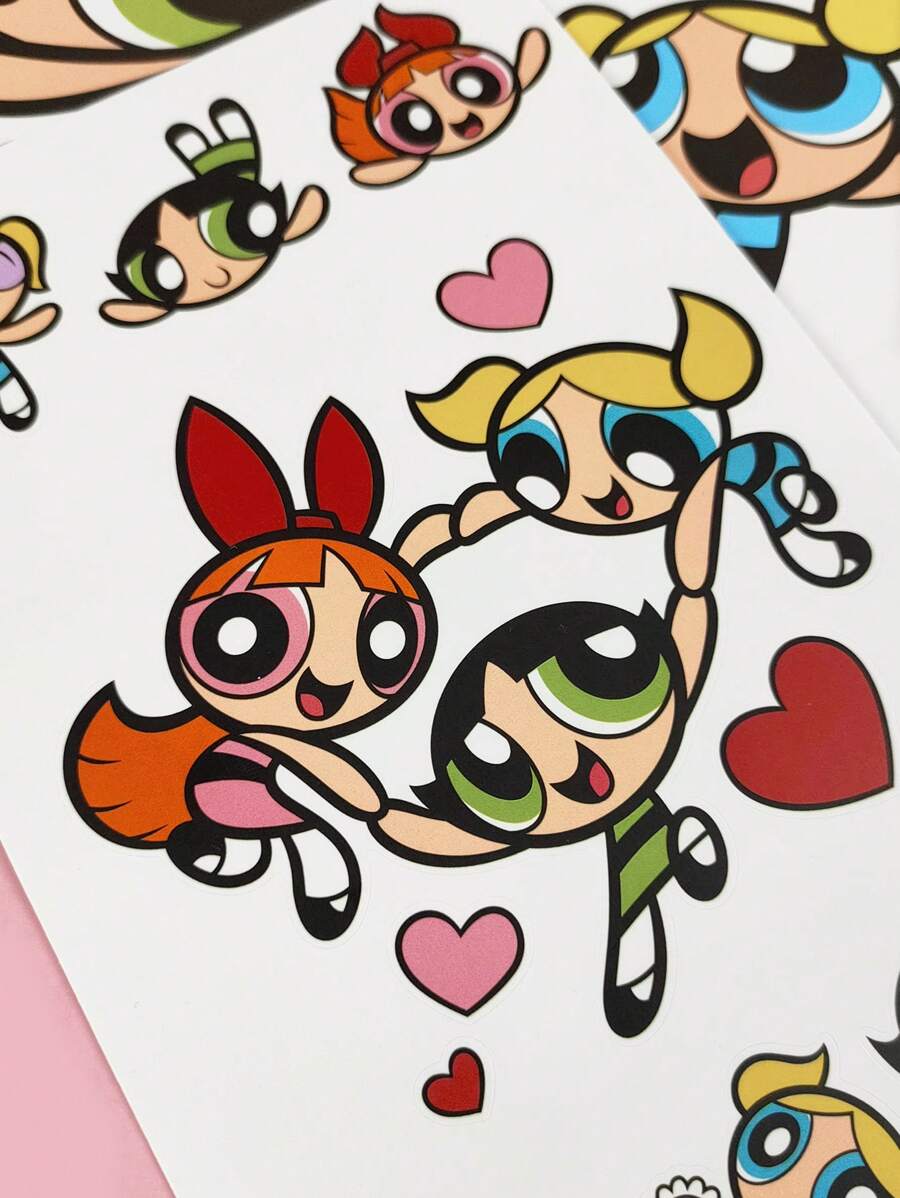 The Powerpuff Girls | ROMWE 4pcs/Set Cartoon Girl Print Sticker, School