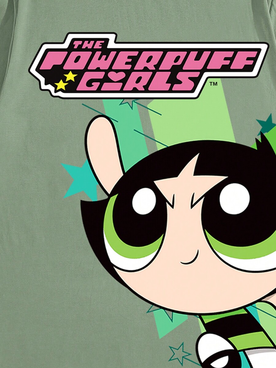 The Powerpuff Girls | ROMWE Men Cartoon Printed Short Sleeve Round Neck T-Shirt, Suitable For Daily Wear In Spring And Summer, School