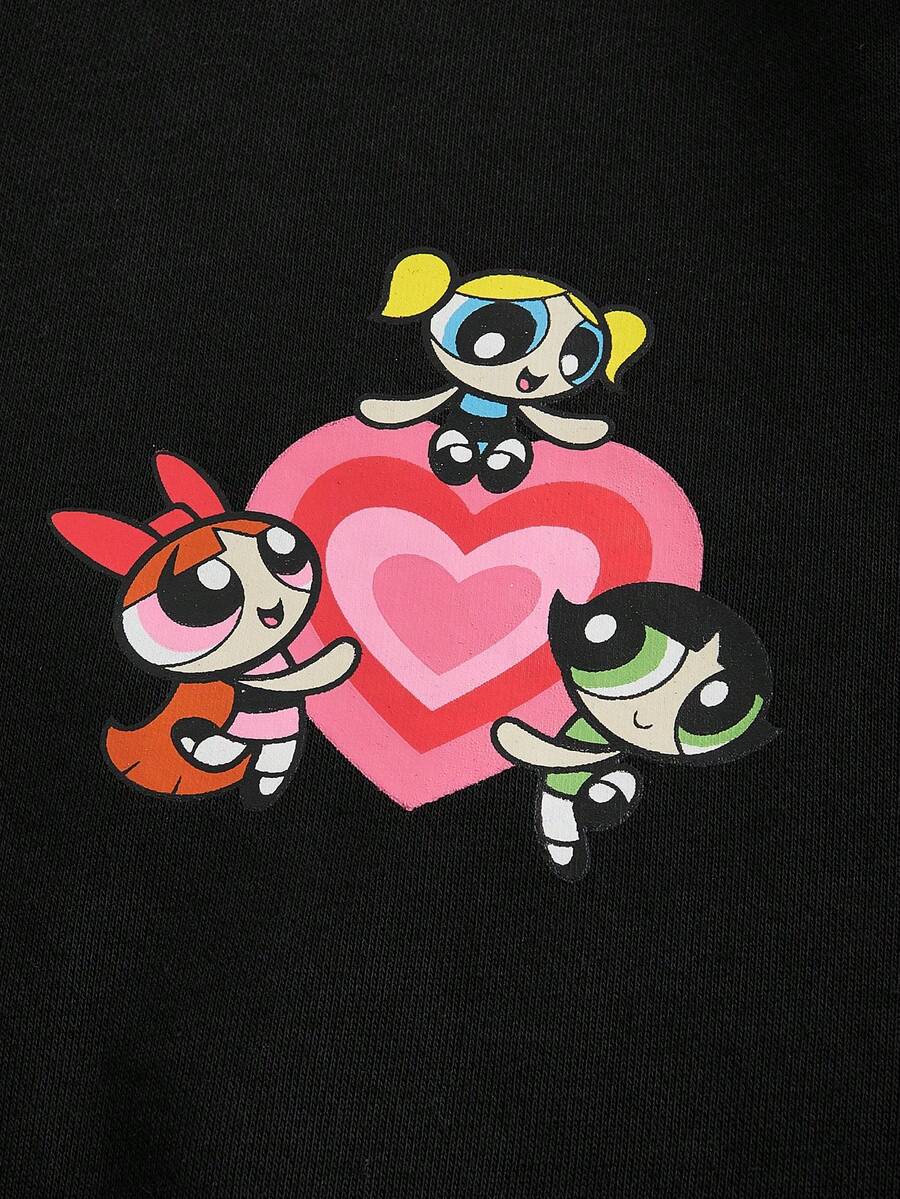 The Powerpuff Girls | ROMWE Women's Cartoon Print Loose Drawstring Zipper Front Cropped Hoodie, Long Sleeve Tops, For Spring Autumn, School
