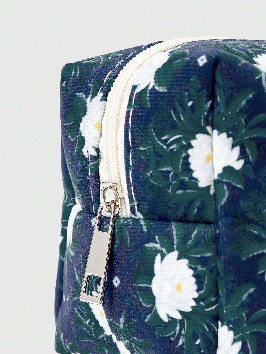The White Lotus 1pc, Floral Pattern Quilted Makeup Bag Pouch, Portable Cosmetic Storage Bag With Zipper, Multi-Functional Organizer Bag, Lightweight Travel Bag Suitable For Men And Women