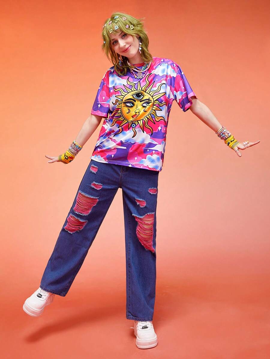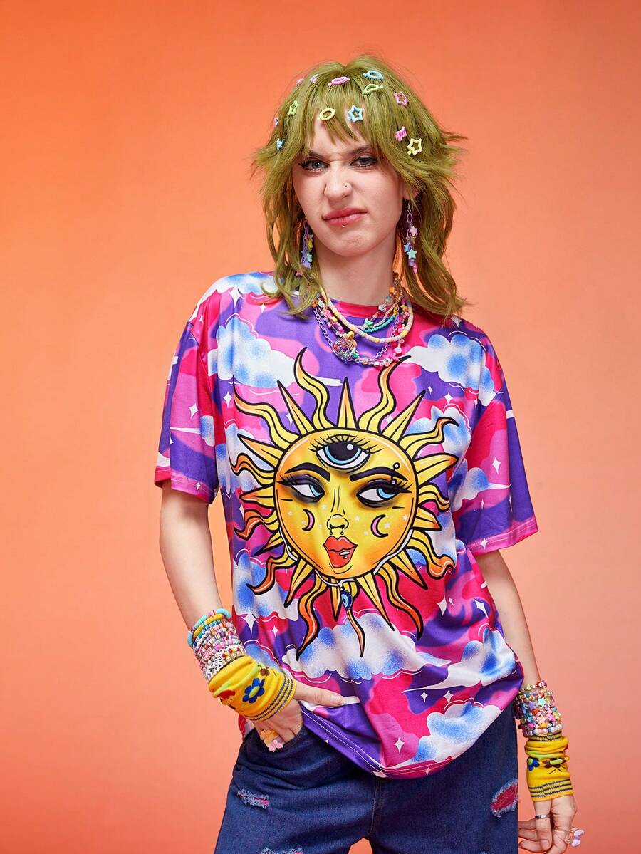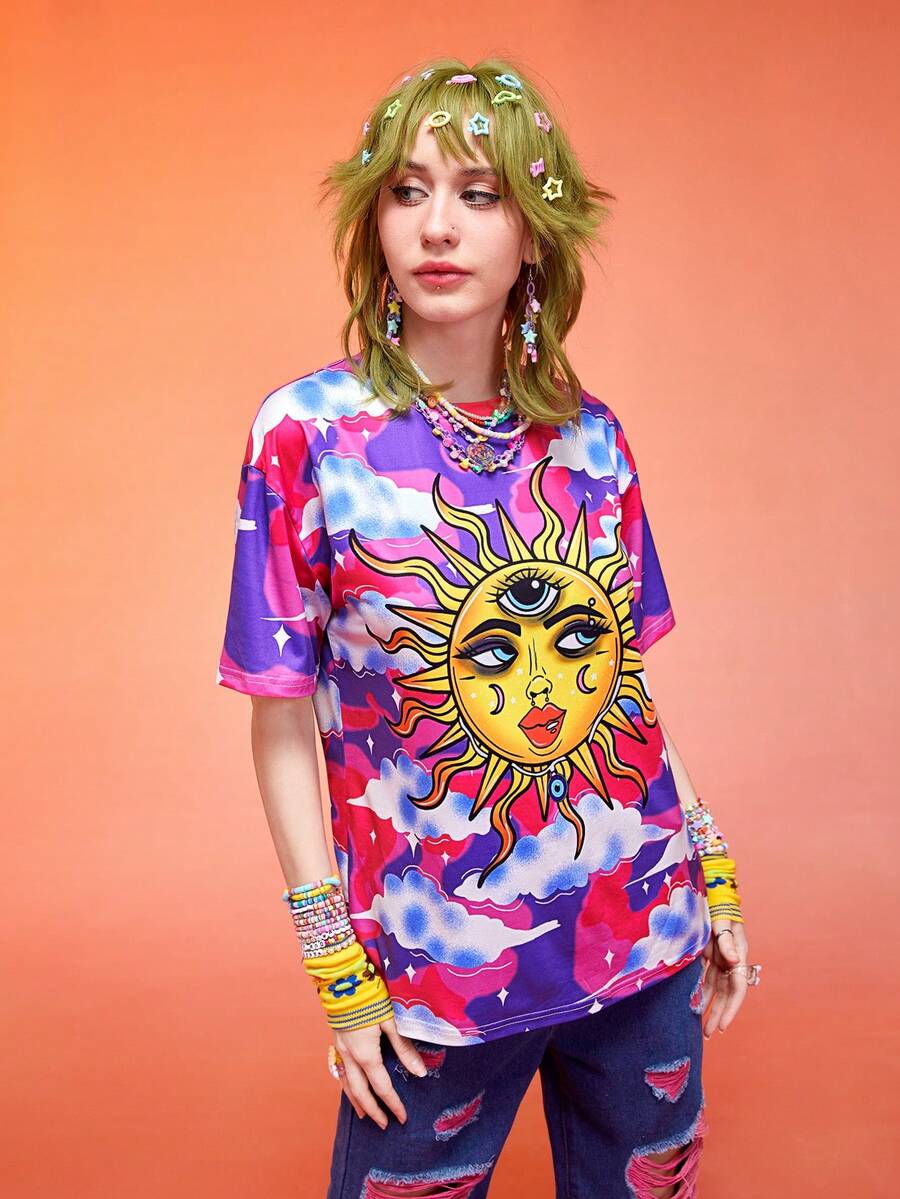 ThisUniqueVibe Cloud Sun & Moon Graphic Drop Shoulder Tee