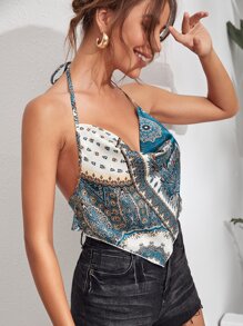 Tie Back Scarf Print Halter Top