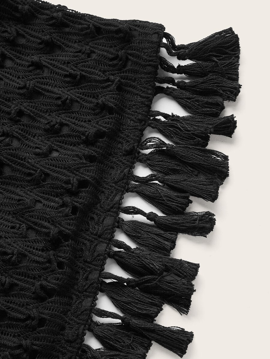 Tie Backless Tassel Trim Halter Bodycon Dress