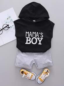 Toddler Boys Letter Graphic Hooded Top & Shorts