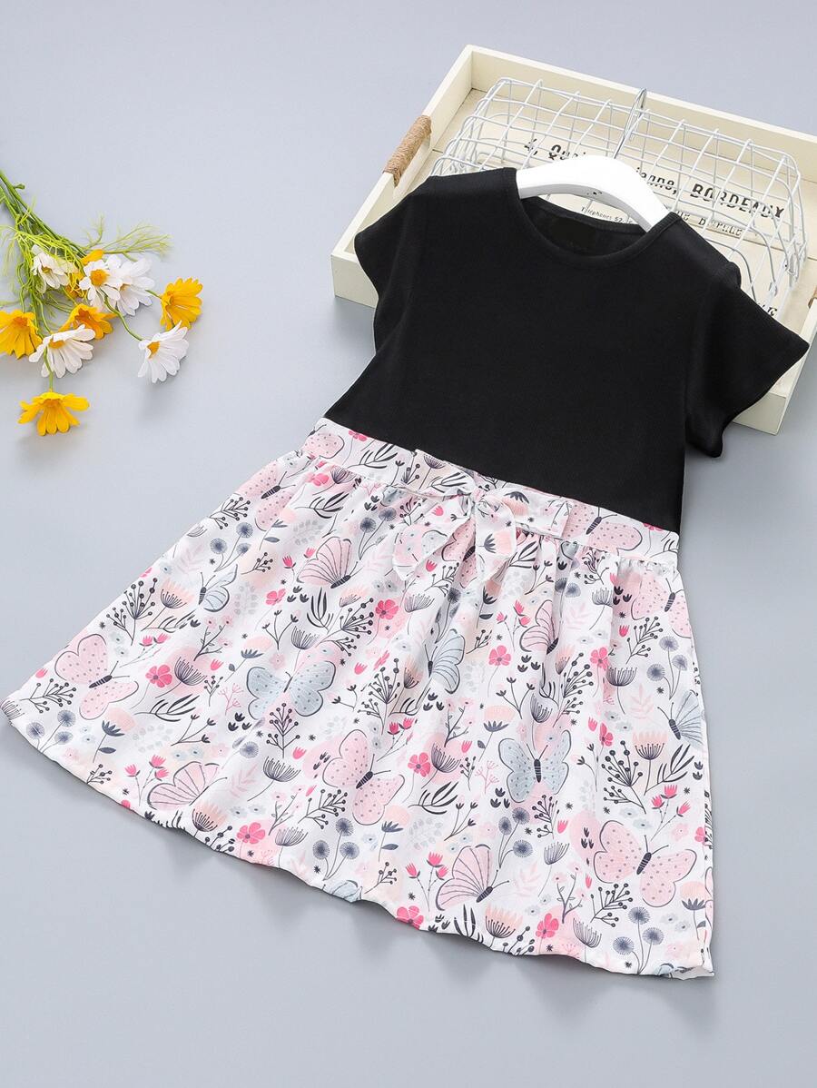 Toddler Girls Butterfly Print Bow Front Combo Dress