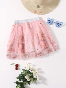 Toddler Girls Cartoon Graphic Mesh Overlay Skirt