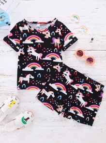 Toddler Girls Cartoon Graphic Tee With Track Shorts