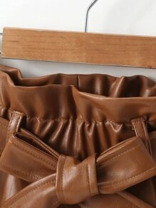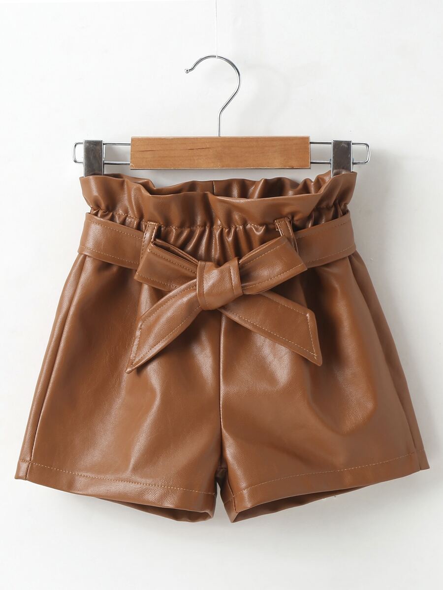 Young Girl PU Leather Belted Paper Bag Waist Shorts